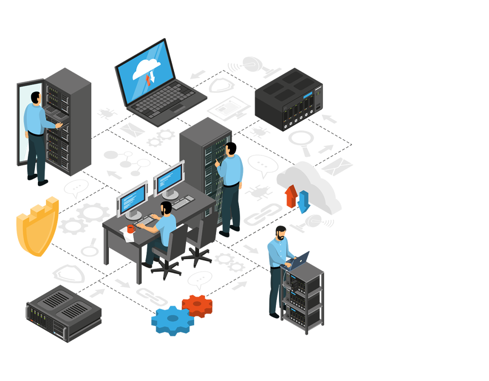 Nosso time técnico, está apto a gerenciar, implantar e administrar sua estrutura de Servidores, com expertise em sistema Windows ou Linux.